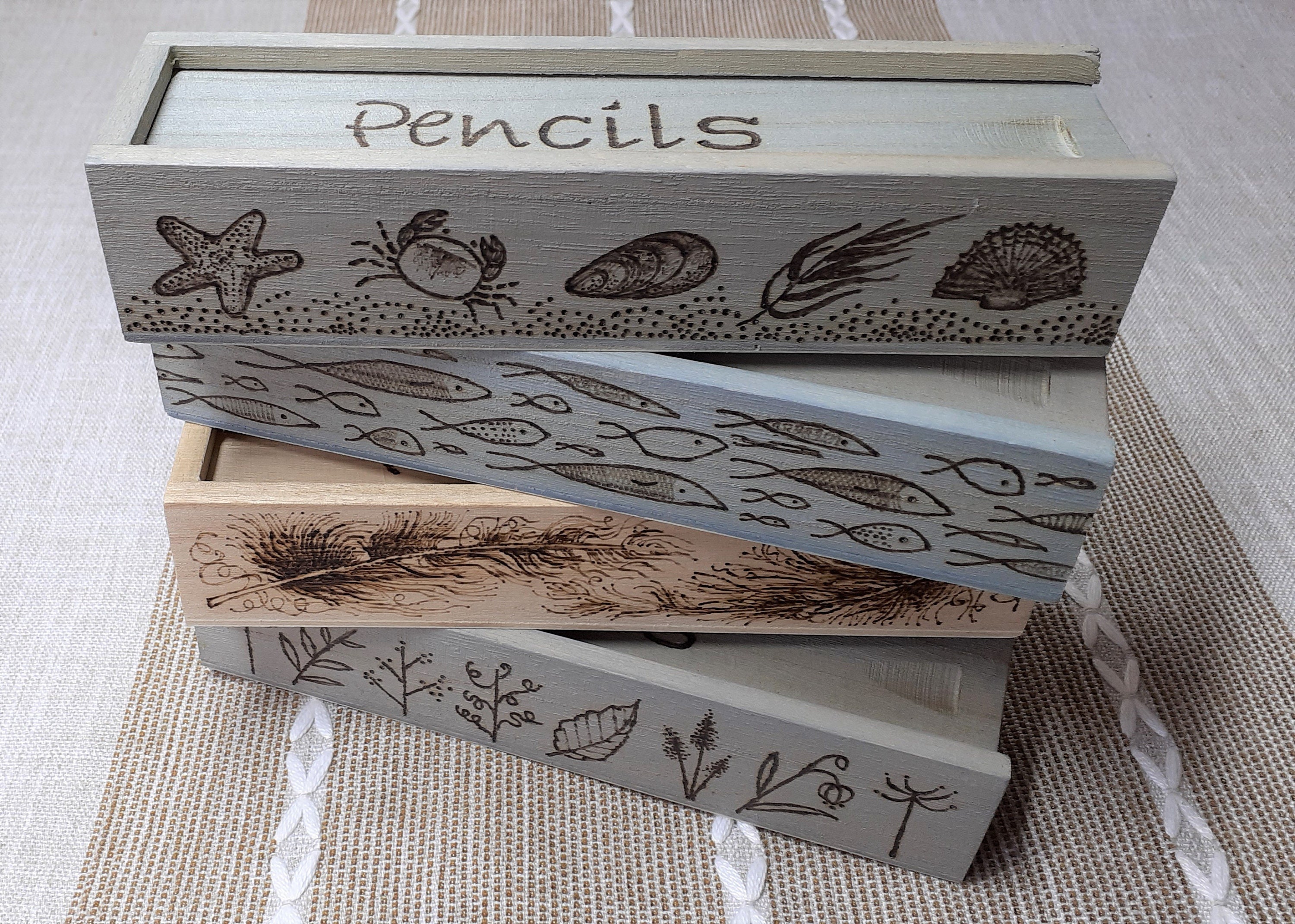 Wooden Pencil Box Etsy